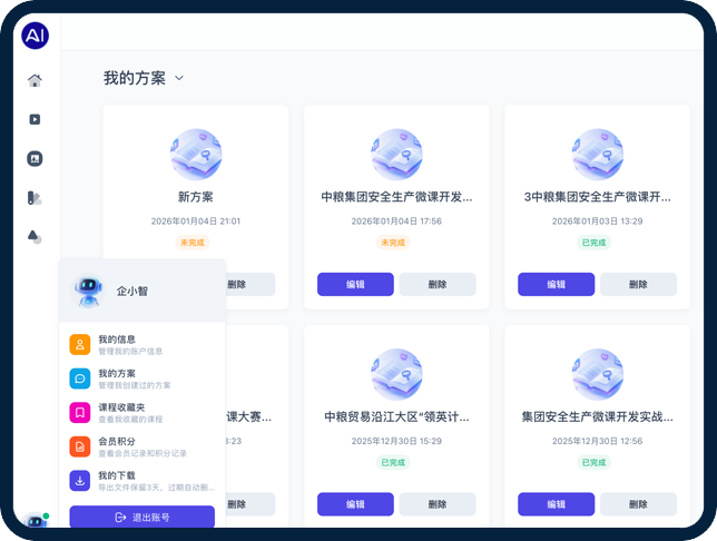 基于千余个成功案例和行业最佳实践,AI生成的方案结构完整、逻辑清晰、内容专业。每个方案都经过专业模板验证,确保符合培训行业规范,让您的方案质量始终保持在行业领先水平,赢得客户信任。